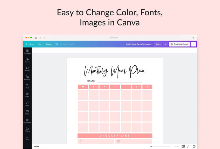Peach Burst Monthly Meal Plan Calendar Printable and Editable Canva Template