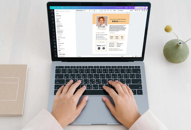 Market yourself better with this professional and easy-to-edit Canva template for speakers and personal brands. As a speaker, you should be marketing your expertise and communicating it to event planners. You need to collate all the information they need and present it at a glance.