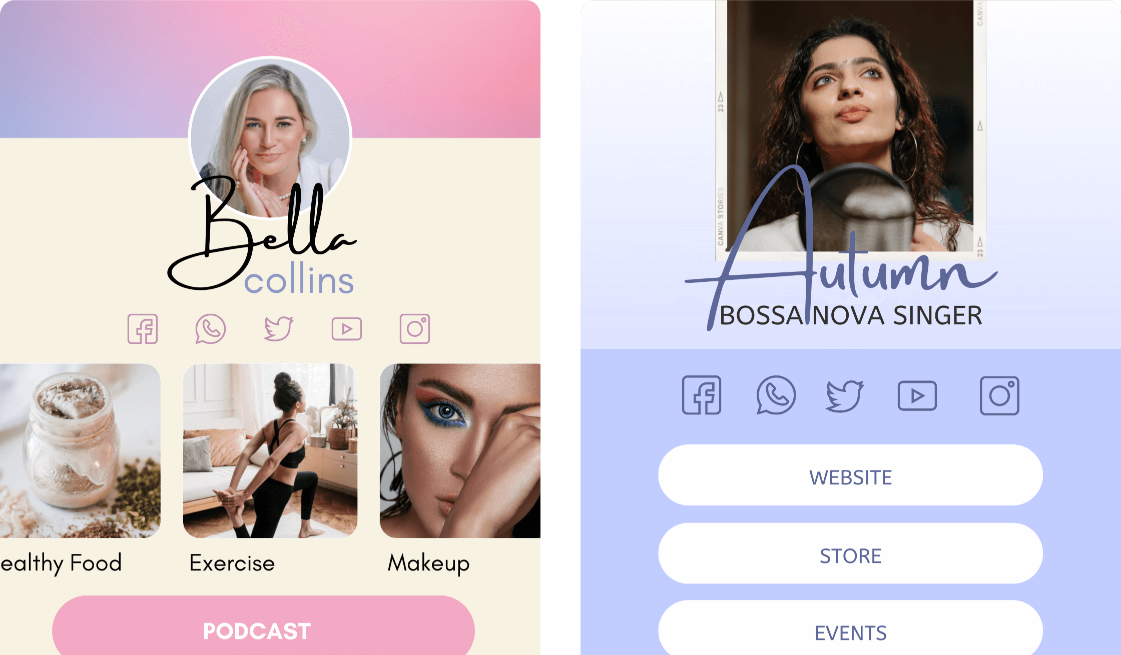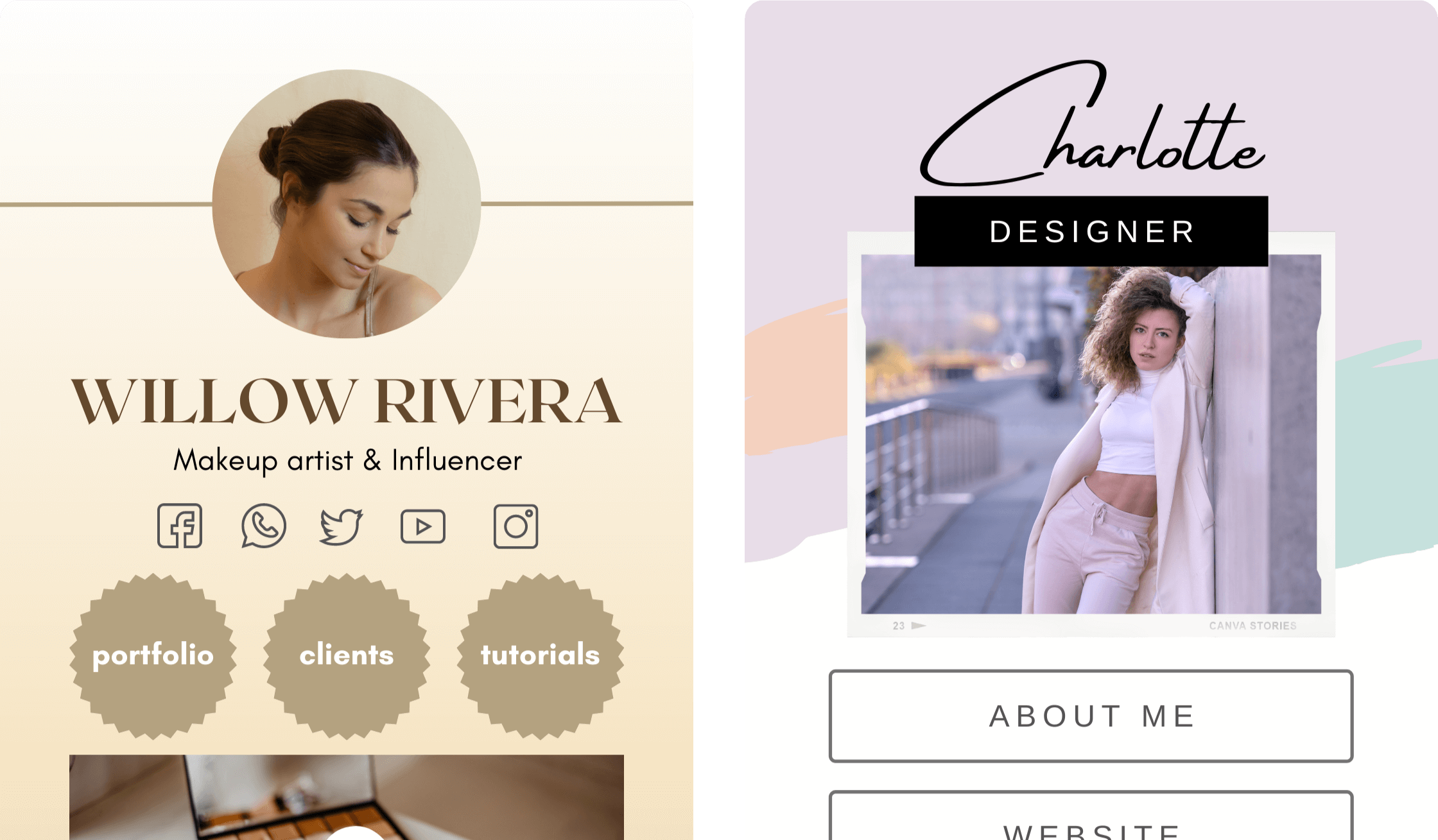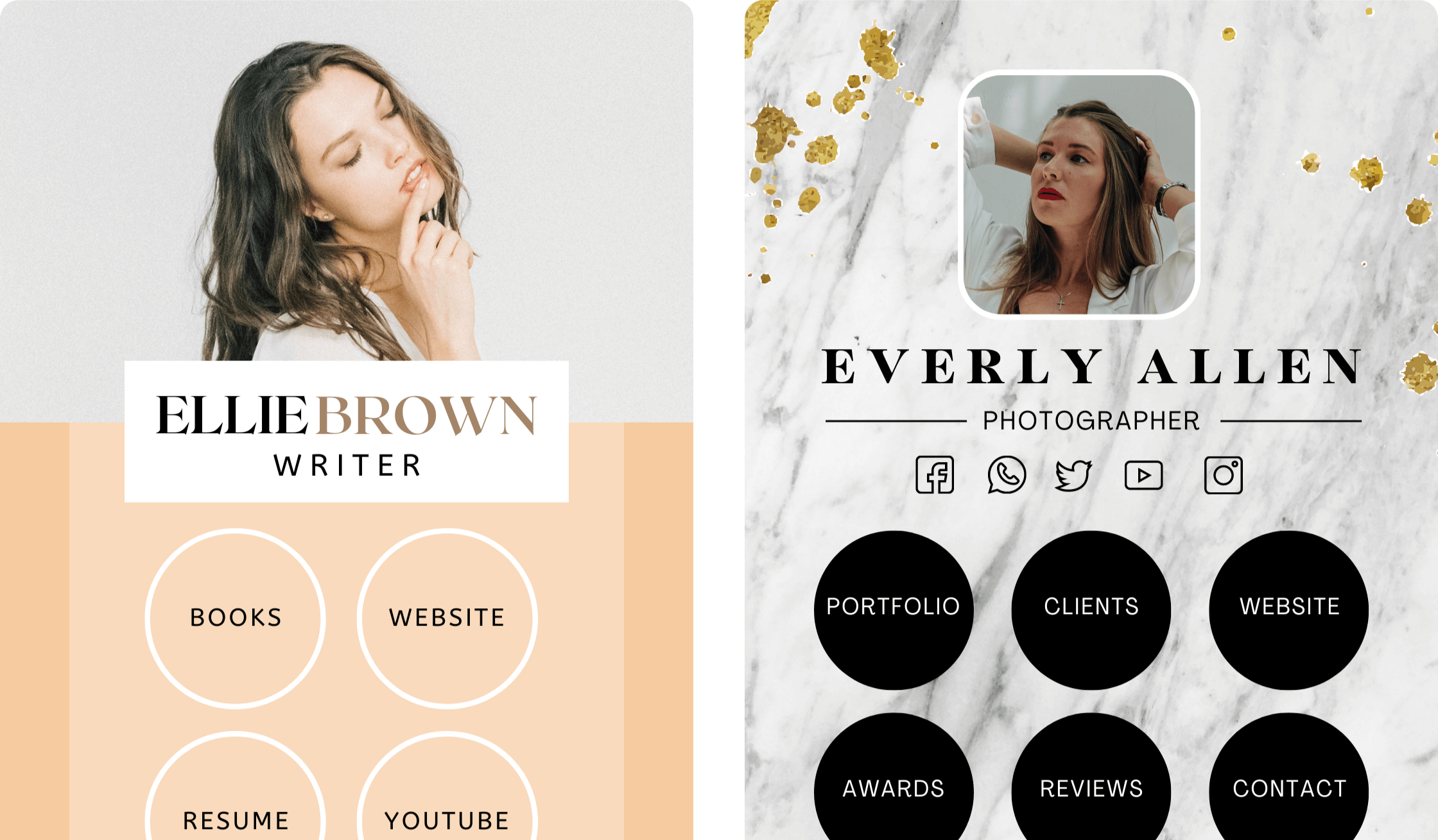 Promote your products, services and lead magnets with just one URL -- Choose from 40+ Canva Templates to share your top links.