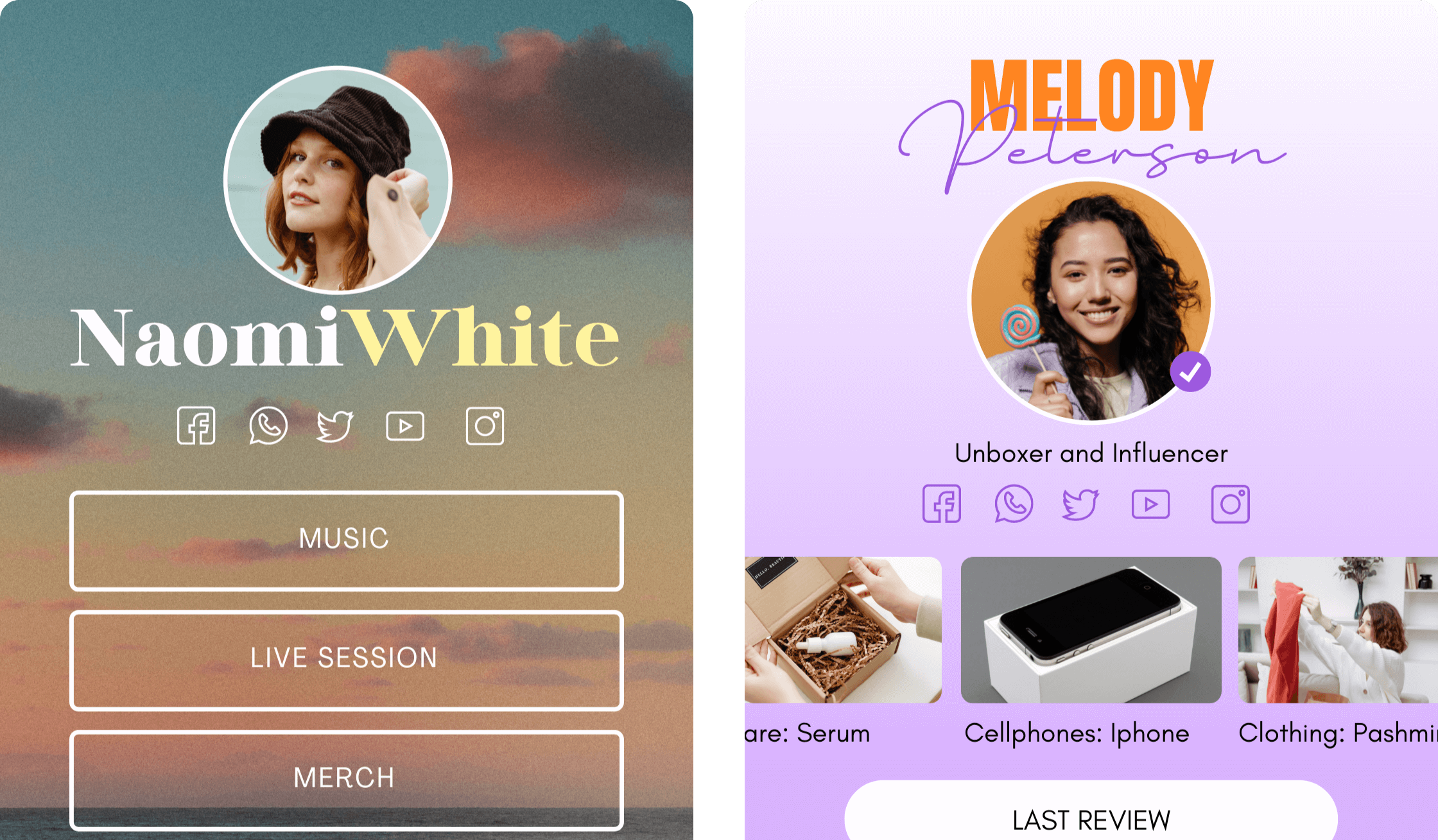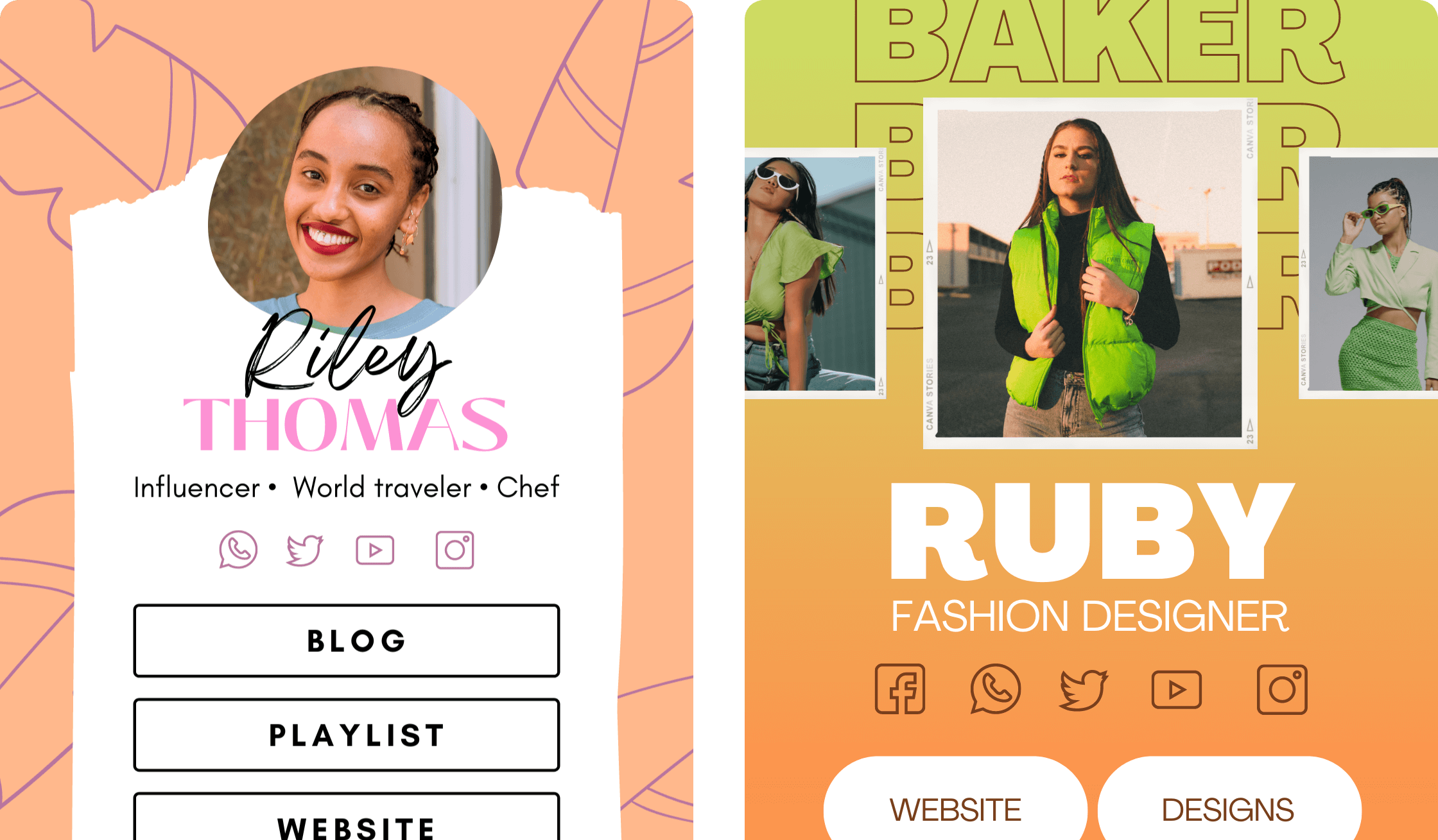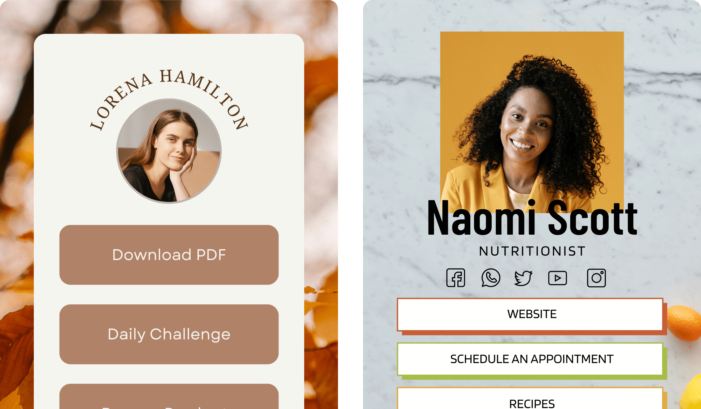 Promote your products, services and lead magnets with just one URL -- Choose from 40+ Canva Templates to share your top links.