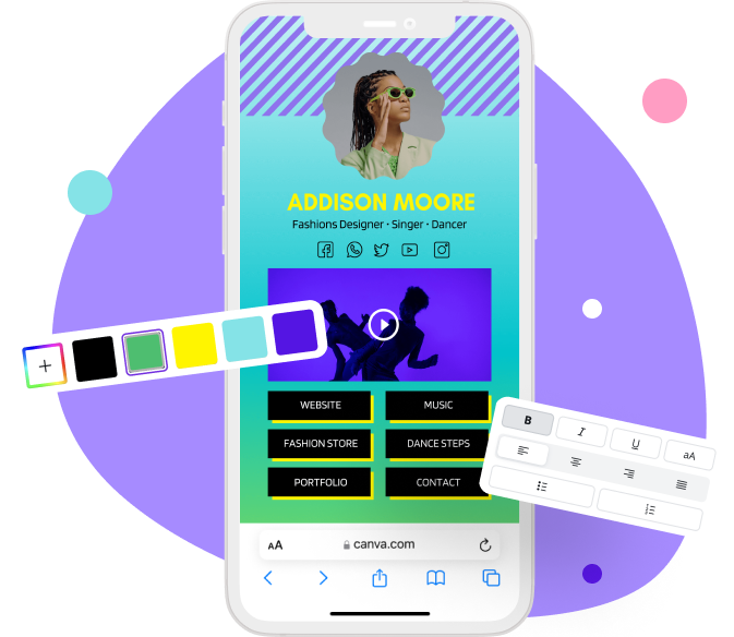 Quickly create a professional-looking bio link page in Canva